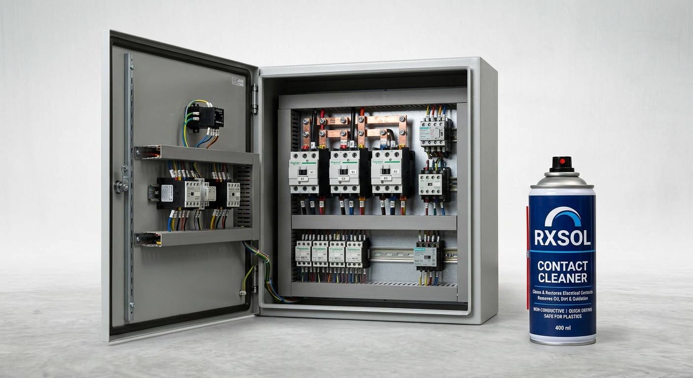 Protective relays and contactors rely on pristine metal-to-metal contact to function accurately. Oxidation, airborne grease, and micro-debris can increase contact resistance, leading to localized overheating (hot spots) and erratic relay operation. Electrosol is used to precision-clean these micro-components. Its fast-evaporating nature ensures that delicate springs and electromagnetic coils in the relays are cleaned and dried within minutes, drastically reducing downtime during critical turnaround periods.
